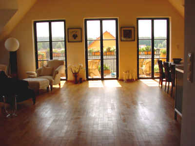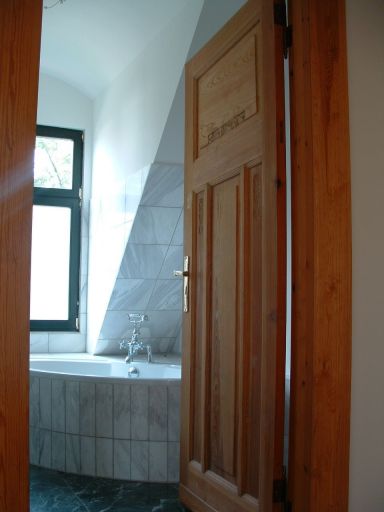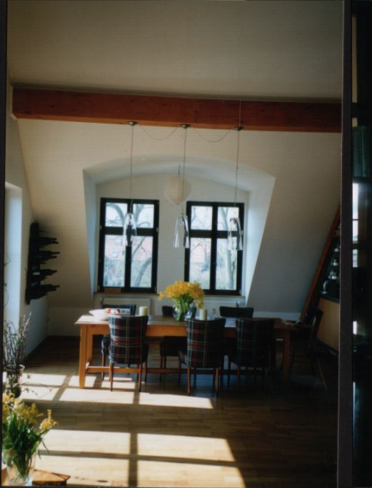 Die Dachgeschosswohnung Hier finden Sie einige weitere Bilder zu dieser Wohnung. Über ein schönes Entrée mit Jugendstiltreppenhaus gelangen Sie in das Dachgeschoss. Großzügige Gauben nach Ost und West ausgerichtet sorgen für schöne Ausblicke und Licht im Überfluss, nach Süden hin gelangt man über drei Doppelflügeltüren auf den großen Balkon. Die Höhe des Wohnzimmers reicht bis in den First (ca. 5 m); diesen Raum kann man auch von der Galerie aus betrachten, die mit einer Art Balkon in den Raum hineinreicht. Die Wohnung wurde mit höchstem Aufwand und unter Verwendung von historischen Baumaterialien fertig gestellt: Alle Wohnraumböden sind mit altem Buchenparkett (aus der ehemaligen schwedischen Botschaft) ausgelegt, welches ein unnachahmliches Farbenspiel erzeugt. Originale Jugendstiltüren mit dezenten Schnizzereien und originalen Messingbeschlägen vermitteln eine gediegene Wohnatmosphäre. Die Bäder haben antike Marmorfußböden und Wände, edle Objekte und Armaturen im "Retro-Design" (mit modernen keramischen Dichtungen). "Schöner kann man nicht Wohnen".! Übrigens, das Dach ist gut gedämmt - keine Überhitzung im Sommer und kein Erfrieren im Winter !