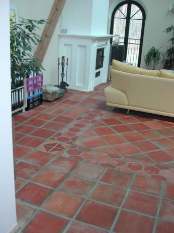 Die beheizten Fußböden sind mit handgemachten Terra Cottafliesen in aufwendigen