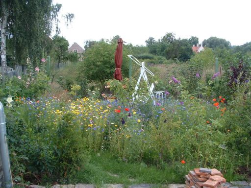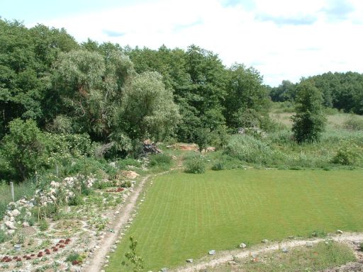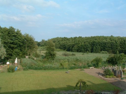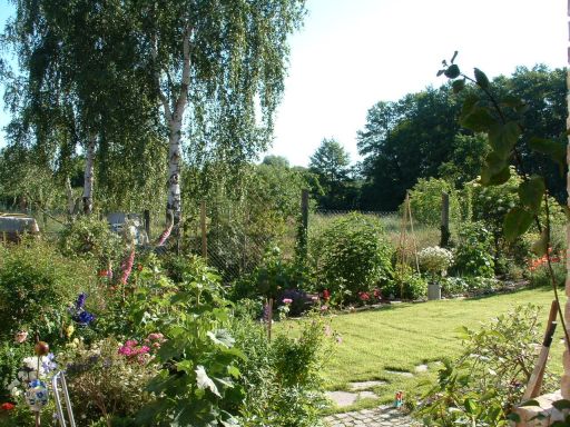 Weitere Hofbilder finden Sie hier.... Aus dem Innenhof führt ein Weg in den großen Garten welcher übergangslos in ein landschaftlich einmaliges Biotop übergeht. Man genießt einen herrlichen Blick über schilfbestandene Lichtungen, kleinere Erlenwälder und den kleinen Dorfweiher. Jeder Mitbewohner ist herzlich eingeladen den Garten mit zu nutzen bzw. - wenn gewünscht - einen Gartenanteil an zu legen. Nachfolgend finden Sie einige Bilder von kleinen "privat" angelegten Gärten. Diese Bereiche fügen sich wunderbar in das große Areal mit Spielwiese und Gemeinschaftsgrillplatz (offene Feuerstelle) ein und ergänzen diesen weitläufigen Landschaftspark.